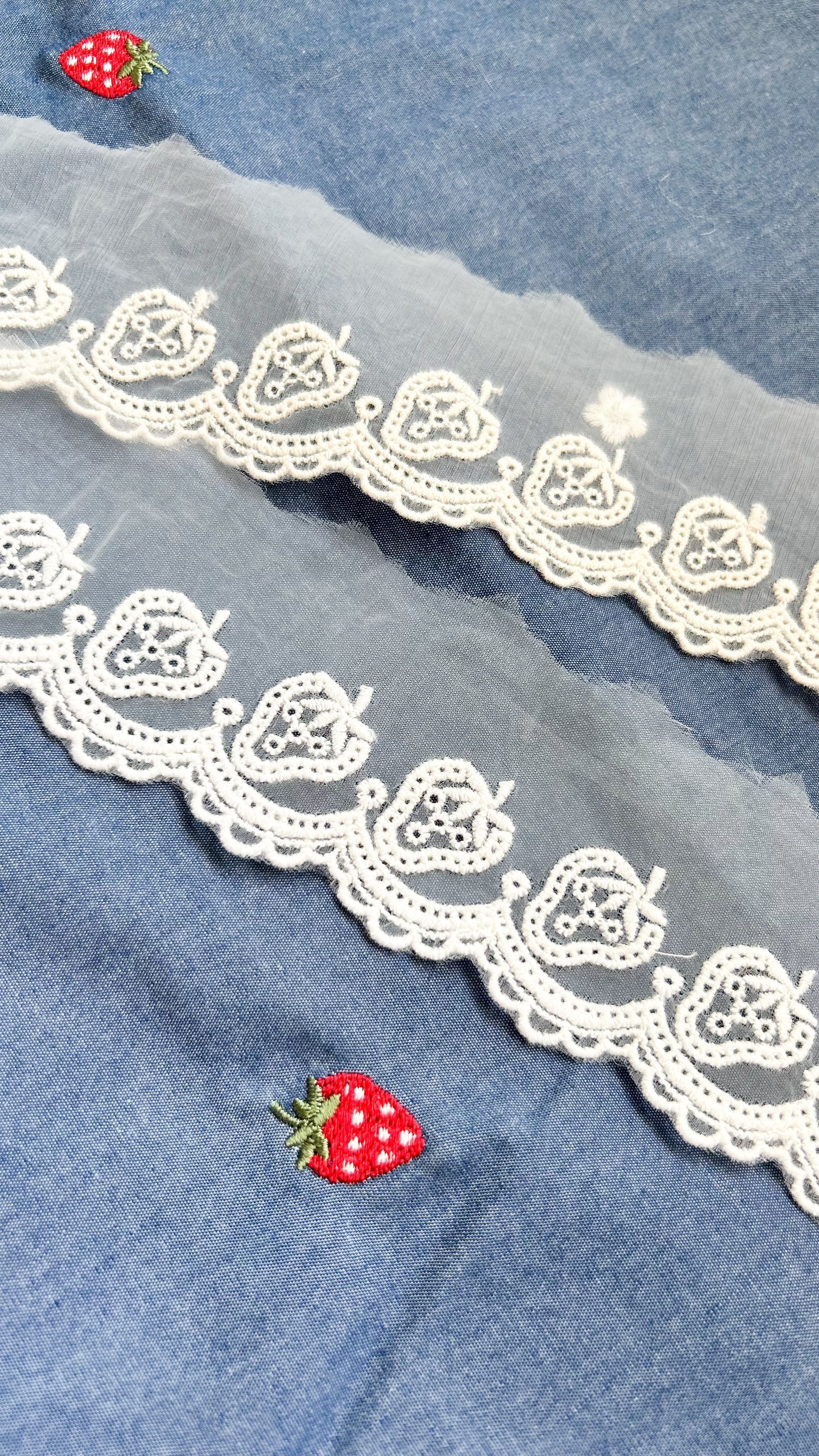 当店のオリジナル生地です! 薄手のデニムに、いちごの刺繍が入った生地です♡ 白いお花もポイントです♪ 娘の服などを作る際に、 いちご刺繍の生地が欲しかったのですが、 なかなか売ってないなぁと思っていて、 作ってもらいました♡ デニム✖️いちごは滅多にないし、 めちゃくちゃ可愛いです!! ✼••┈┈••✼••┈┈••✼••┈┈••✼••┈┈••✼ 【詳細】 ◆素材:コットン 62%、ポリエステル 38% ◆色:ライトブルー ネイビー ◆生地幅:135㎝(余白含む156㎝) ◆サイズ:いちご刺繍サイズ 1.3〜2.3㎝ ◆注文数:数量1=45cm(0.5ヤード) ◆伸縮性:なし ◆透け感:なし ◆厚み:薄め ✼••┈┈••✼••┈┈••✼••┈┈••✼••┈┈••✼ ご購入前にご一読下さい。 https://rinfabric.base.shop/p/00001