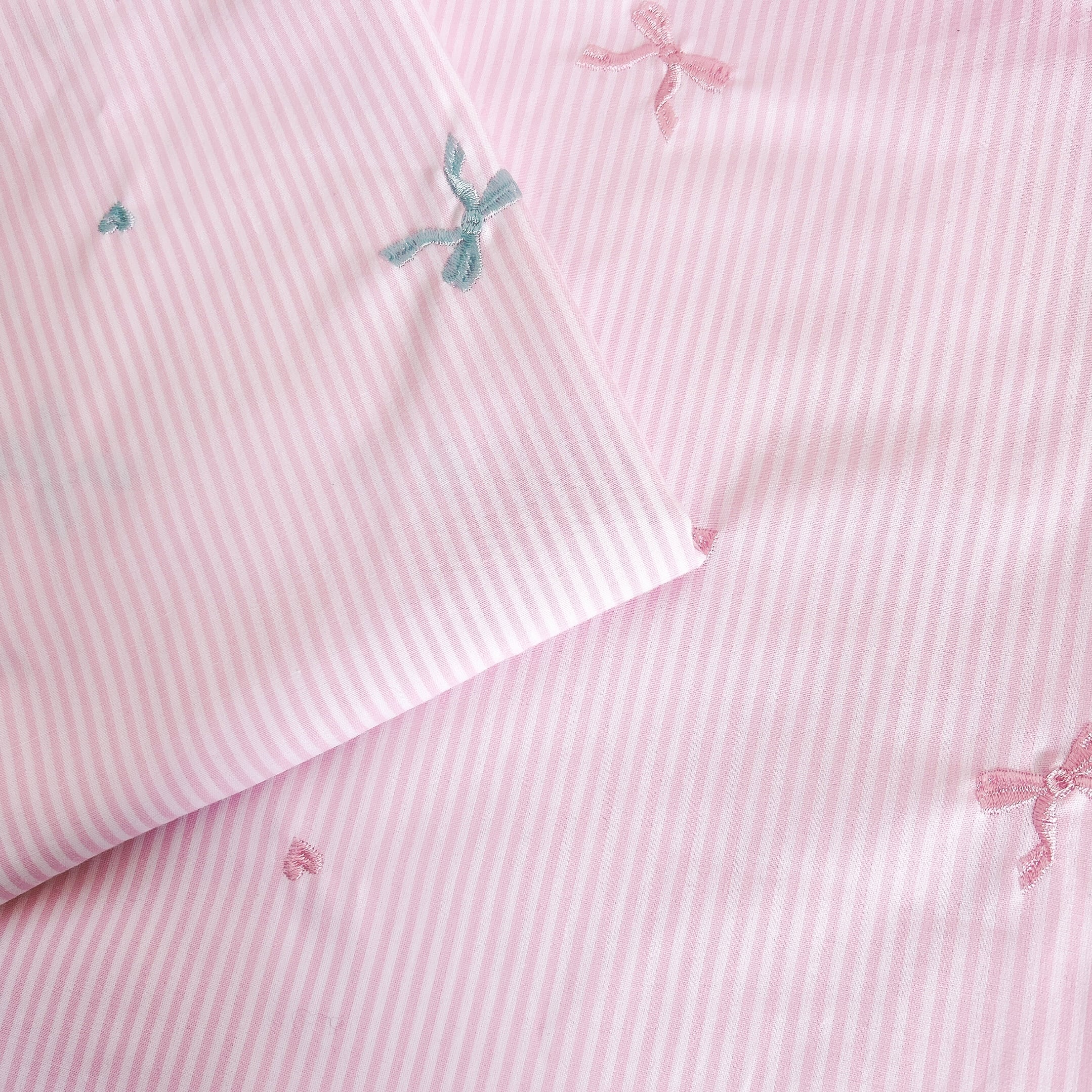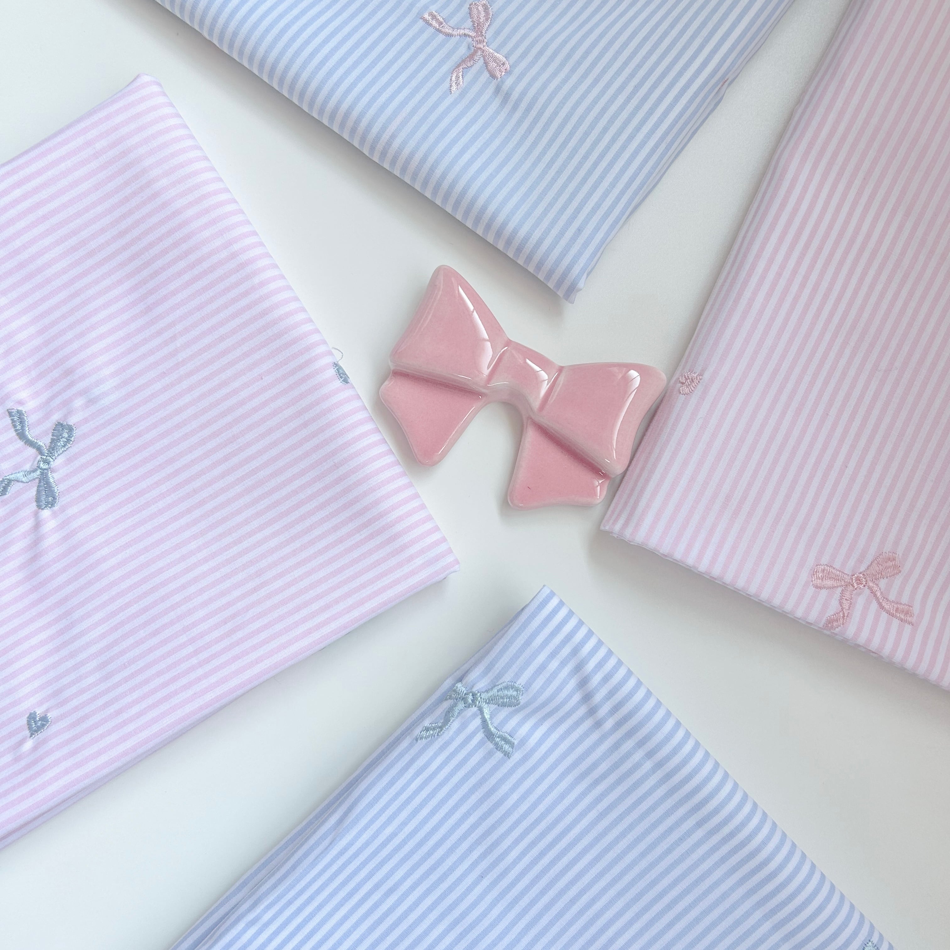 【即納】ストライプ リボン&ハート刺繍 韓国生地