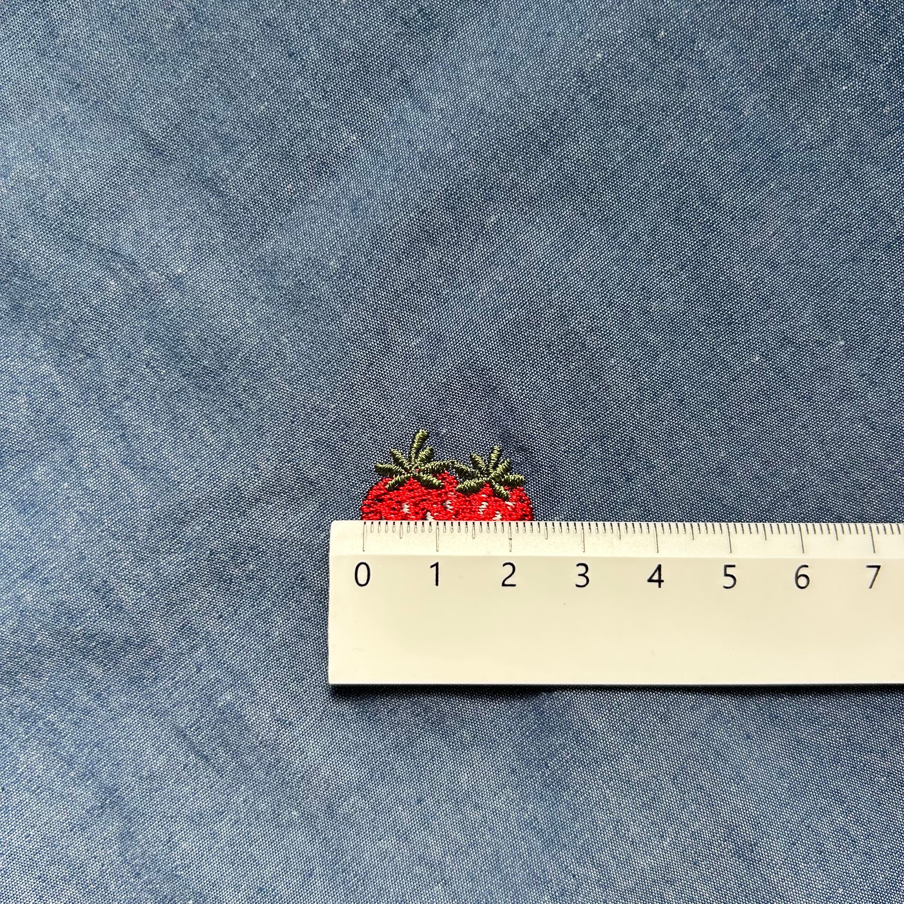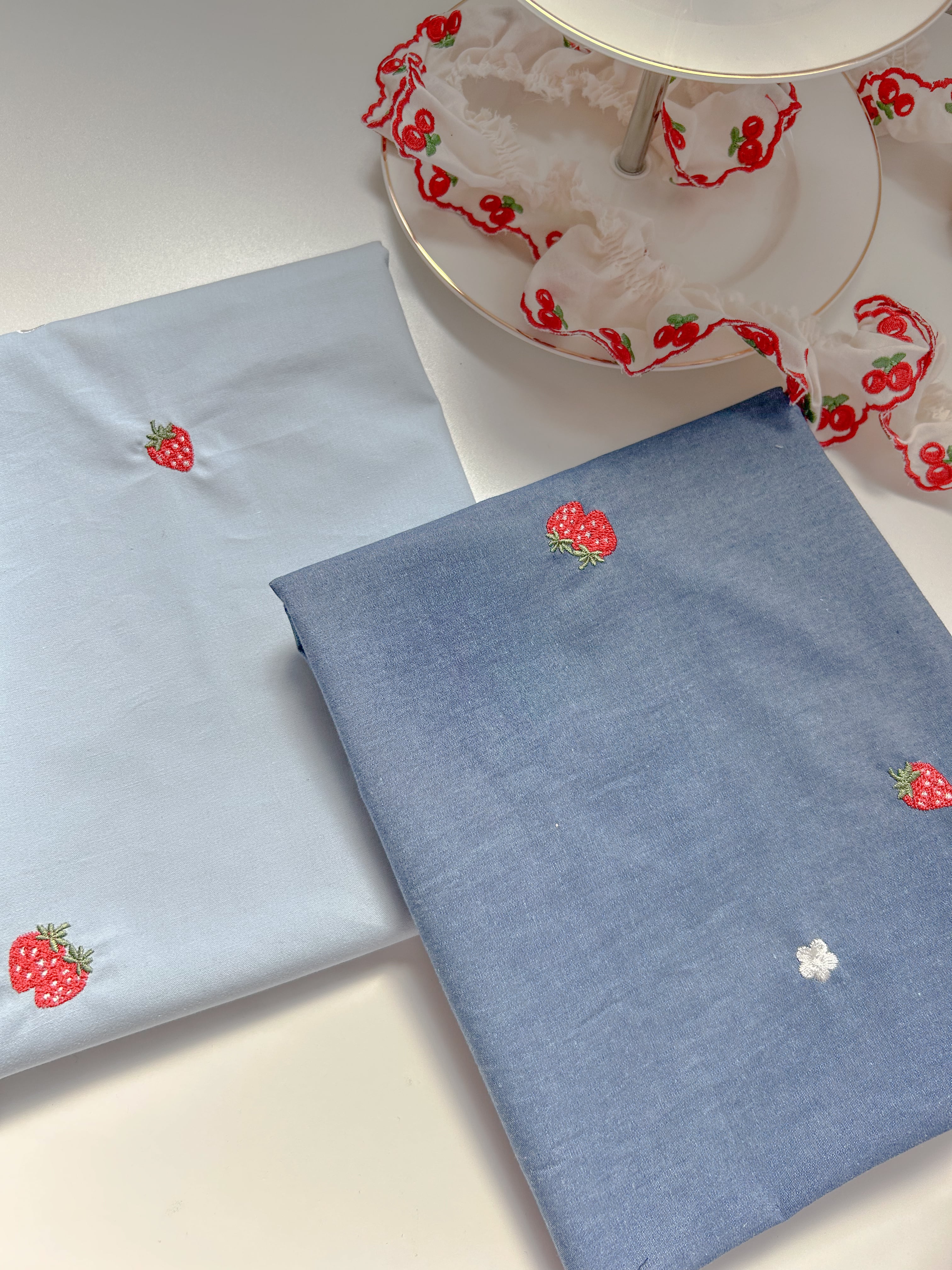 薄手のデニムに、いちごの刺繍が入った生地です♡