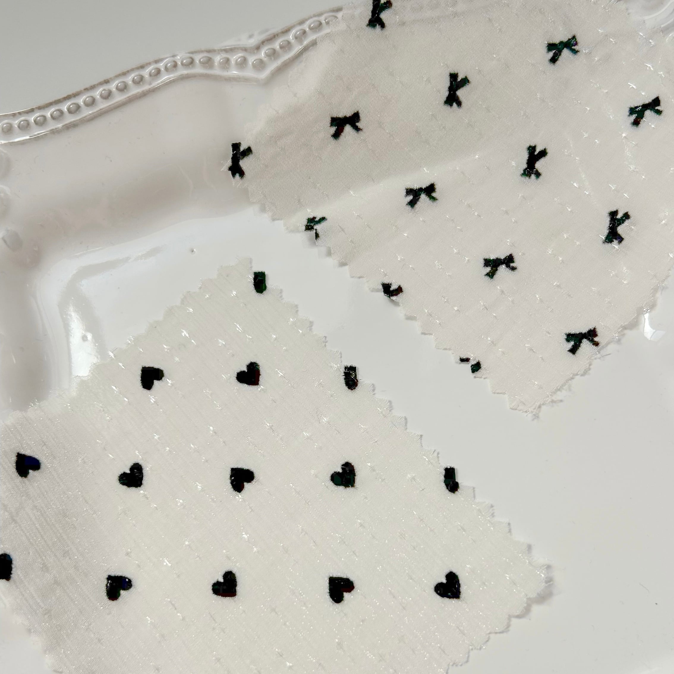 シフォン生地に小さいリボンやハートが