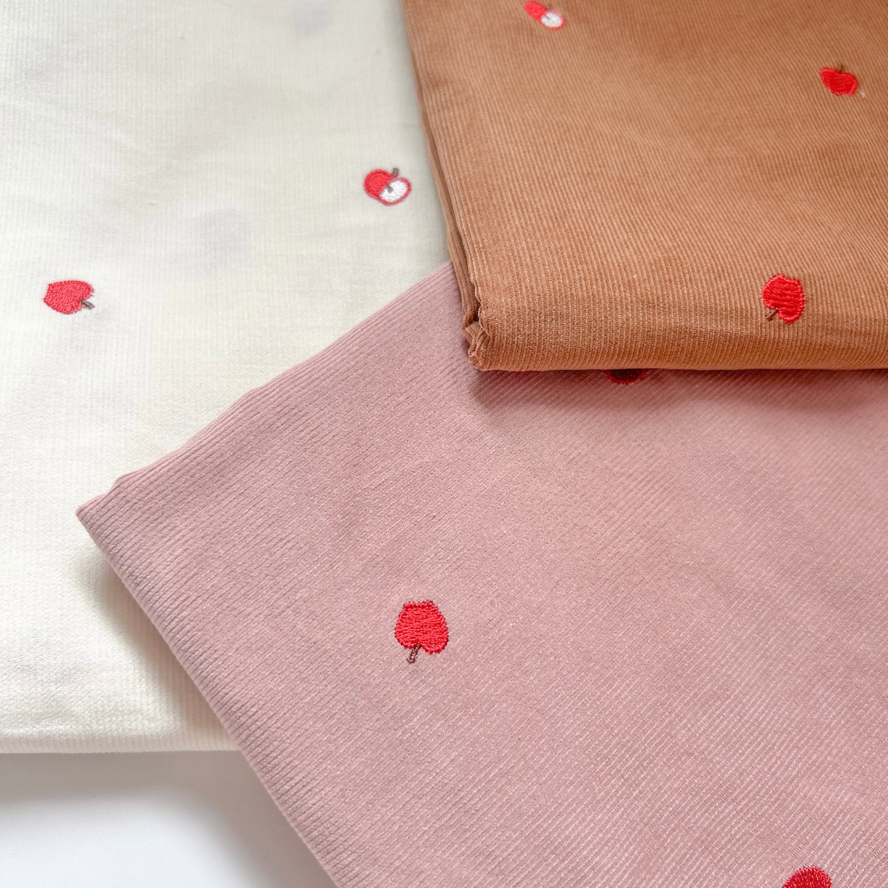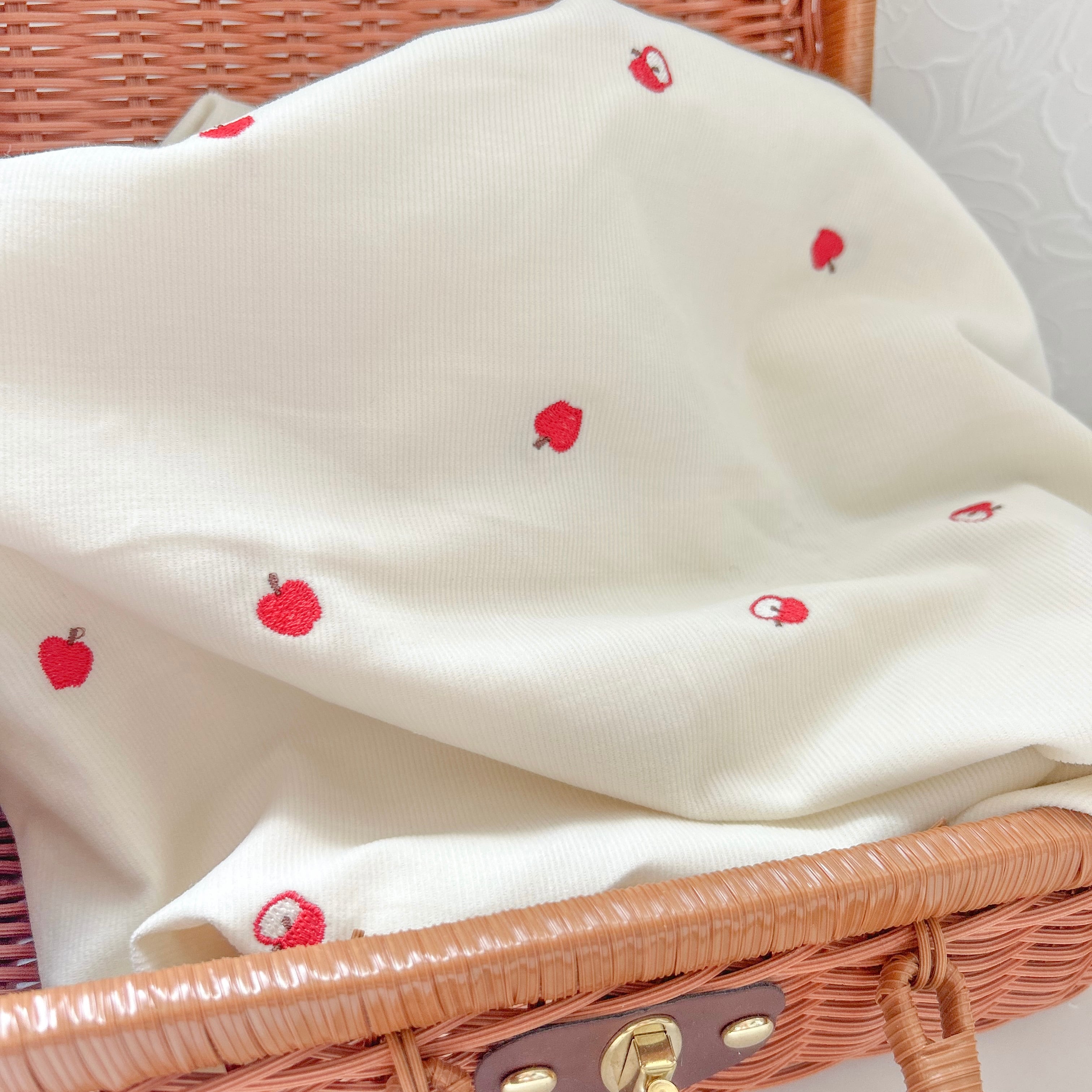 【即納】コーデュロイ りんご刺繍 韓国生地