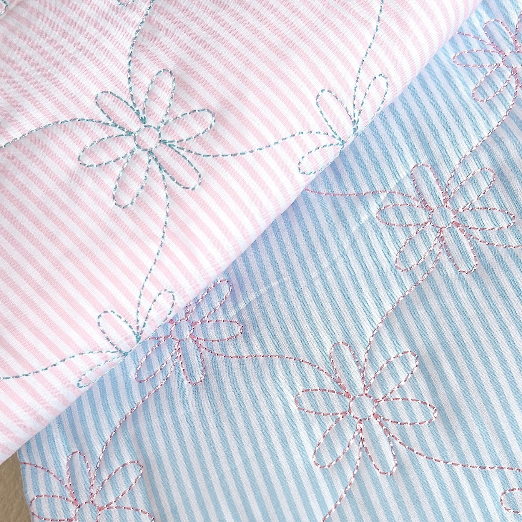 ストライプ生地にフラワー刺繍のキルト生地です♡