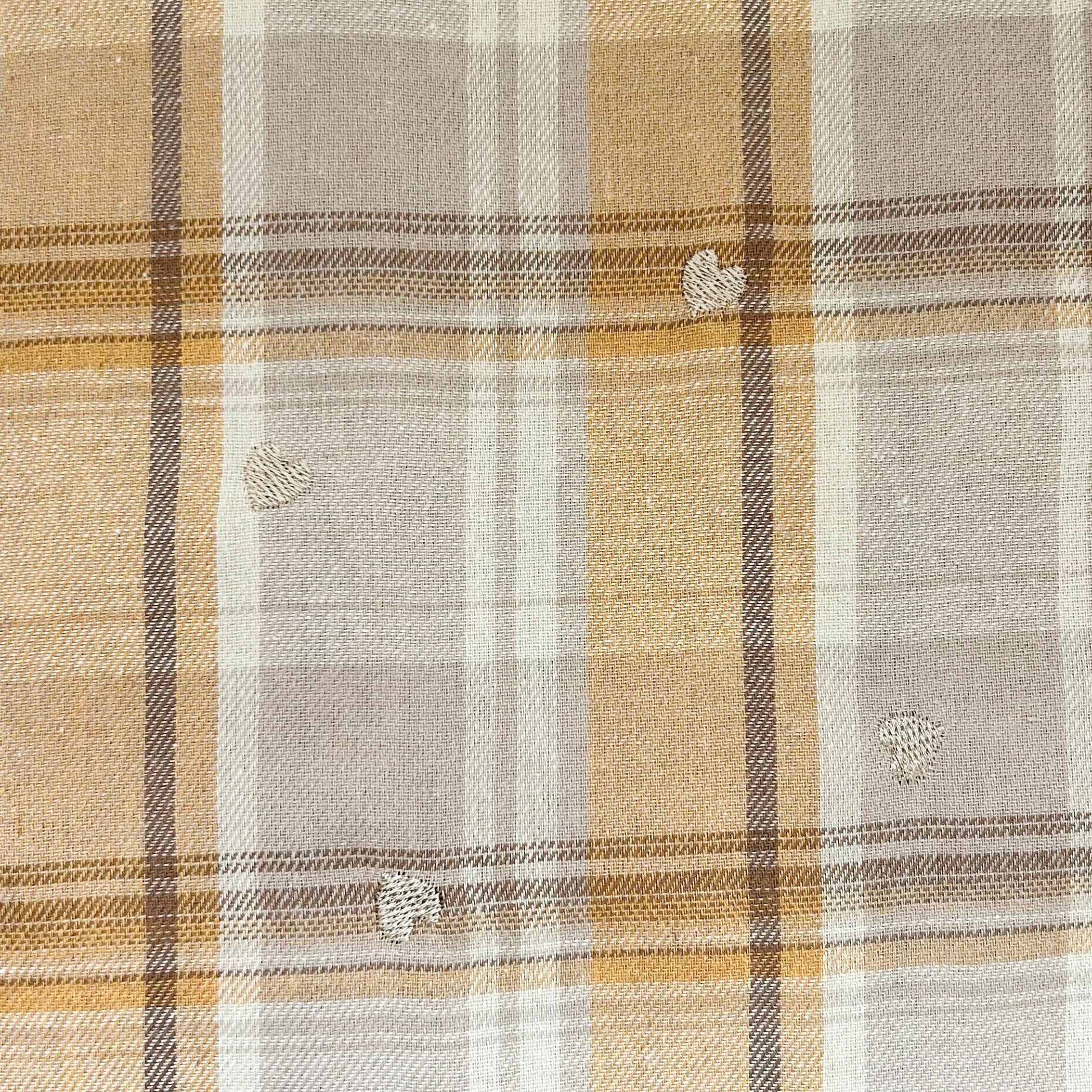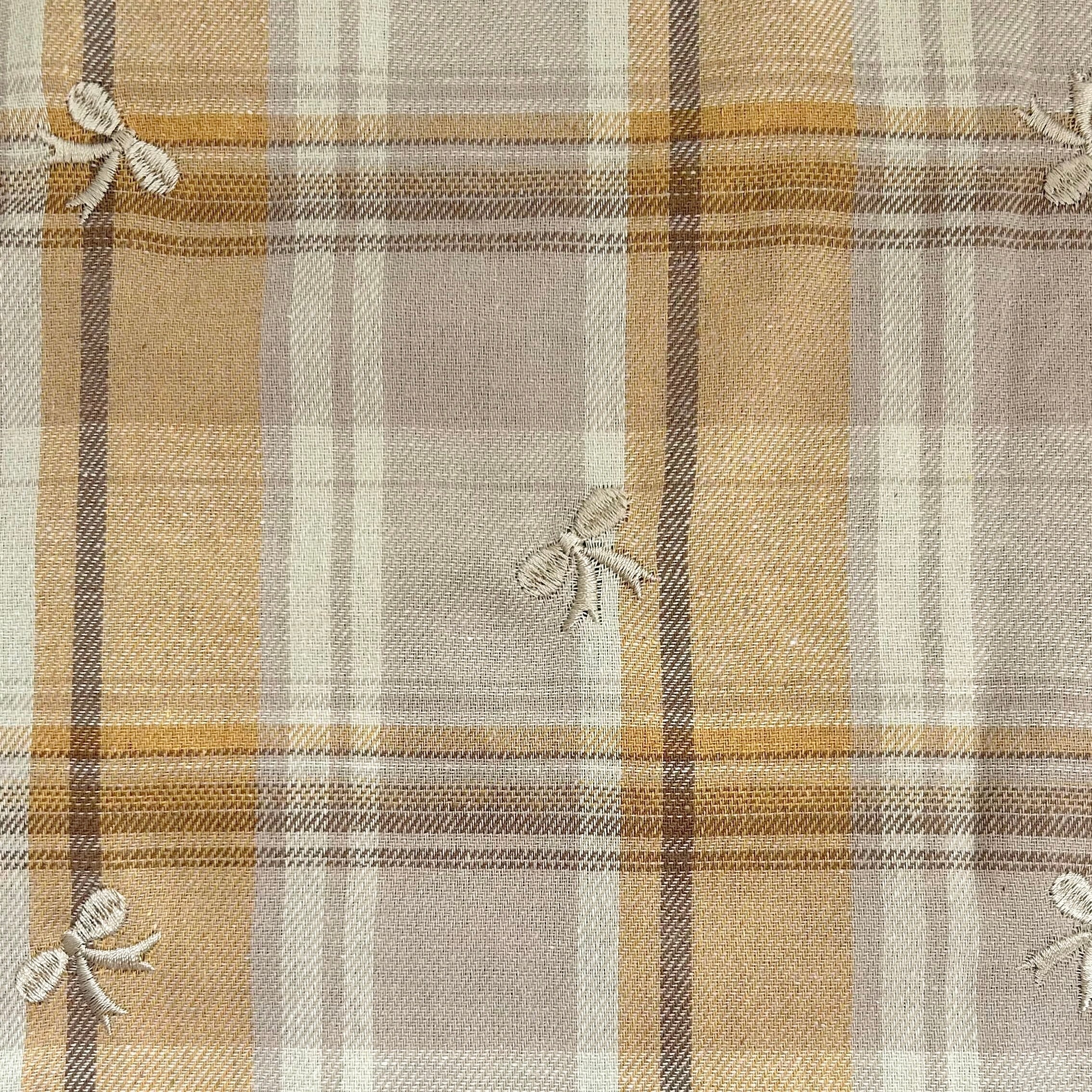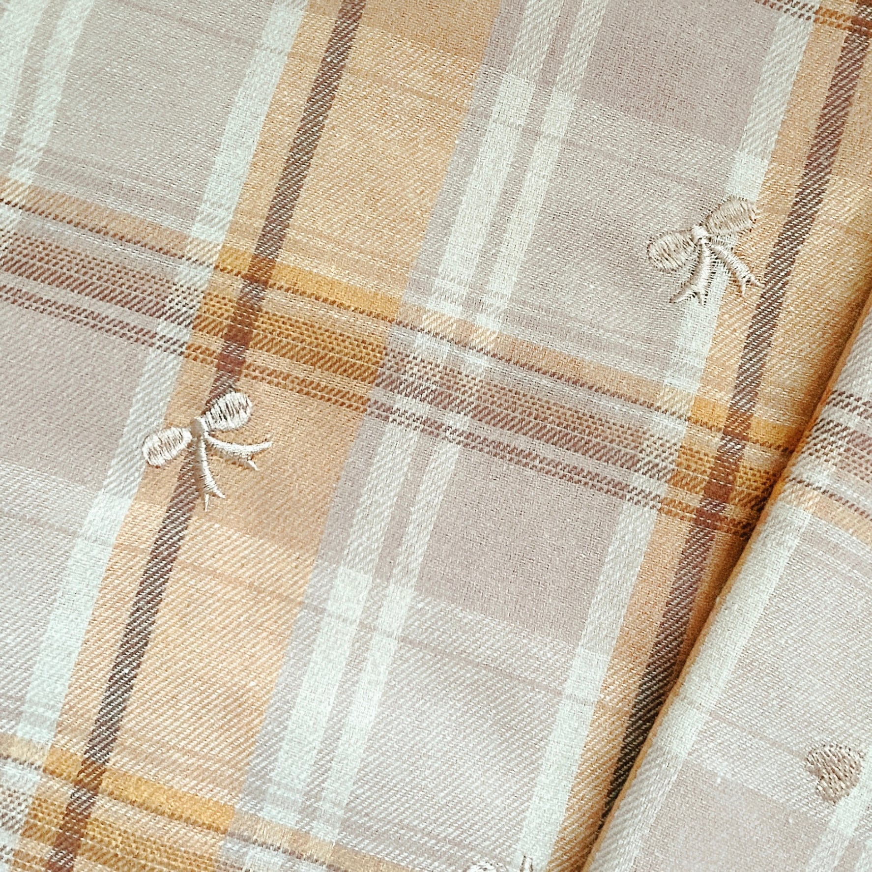 【即納】ベージュチェック ハート・リボン刺繍 韓国生地