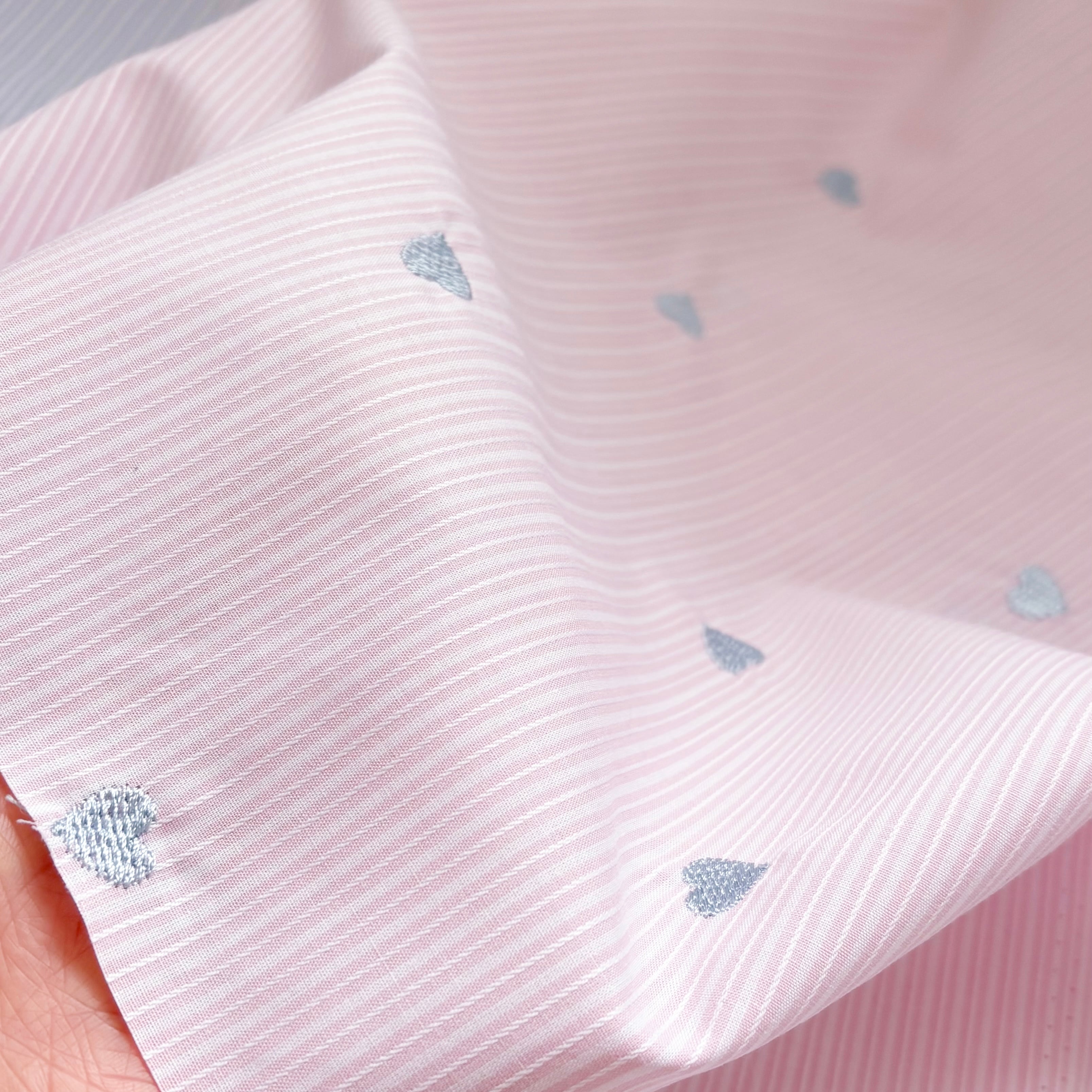 【即納】ラインステッチ ハート刺繍 韓国生地